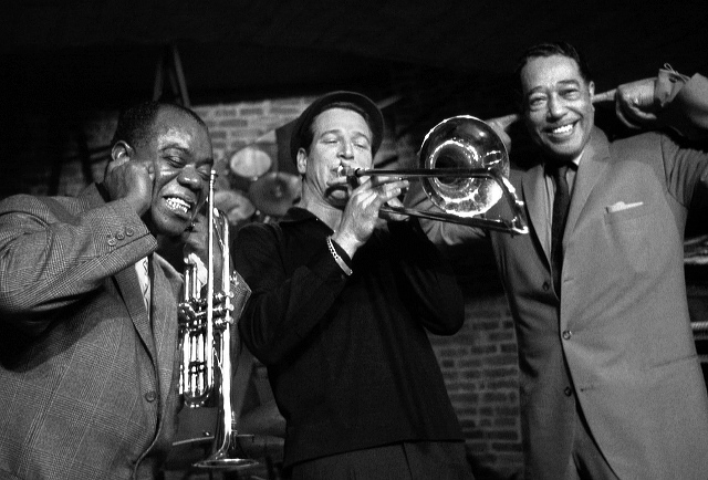 Луи Армстронг, Пол Ньюман и Дюк Эллингтон на съемках фильма "Paris Blues", Париж, 1960 г.