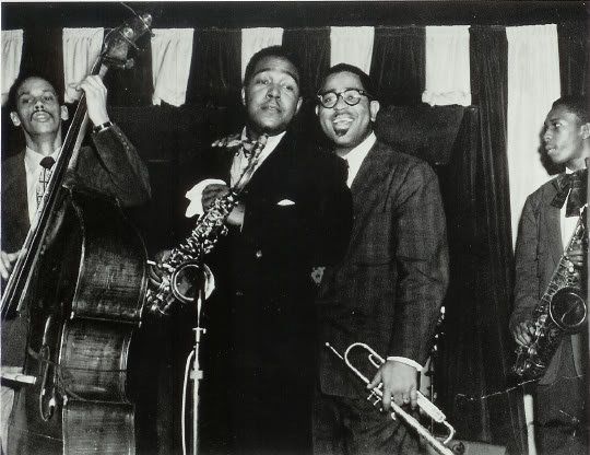 Чарли Паркер и Диззи Гиллеспи, клуб Birdland, Нью-Йорк, 1950 г. (слева Томми Поттер, справа Джон Колтрейн)