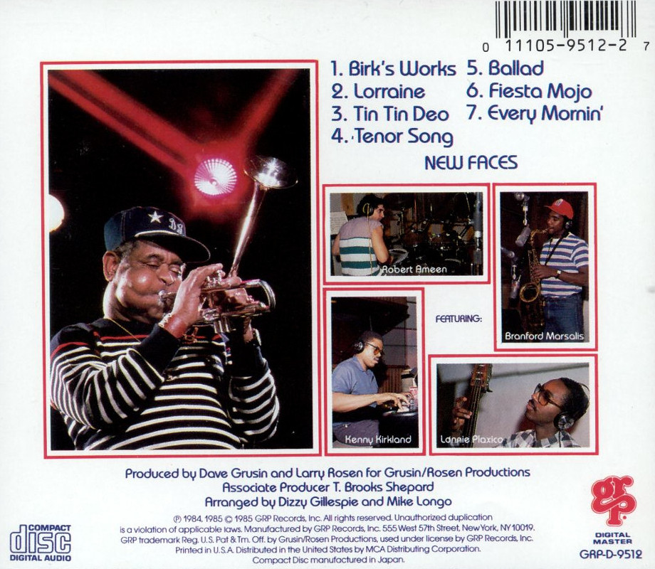 - 01:3292Birk's Works (Dizzy Gillespie) -- Dizzy Gillespie, Branford Marsalis, Kenny Kirkland, Lonnie Plaxico, Robert Ameen